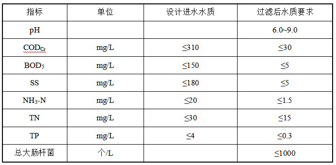 本項目設(shè)計進出水水質(zhì)如下: